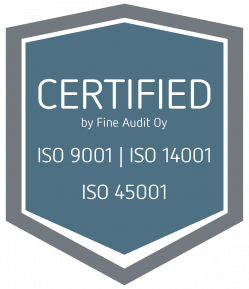 Vi har också ett miljöledningssystem som uppfyller kraven enligt ISO 14001:2015 tillsammans med ett ledningssystem för arbetsmiljö som uppfyller kraven enligt SS-ISO 45001:2018.